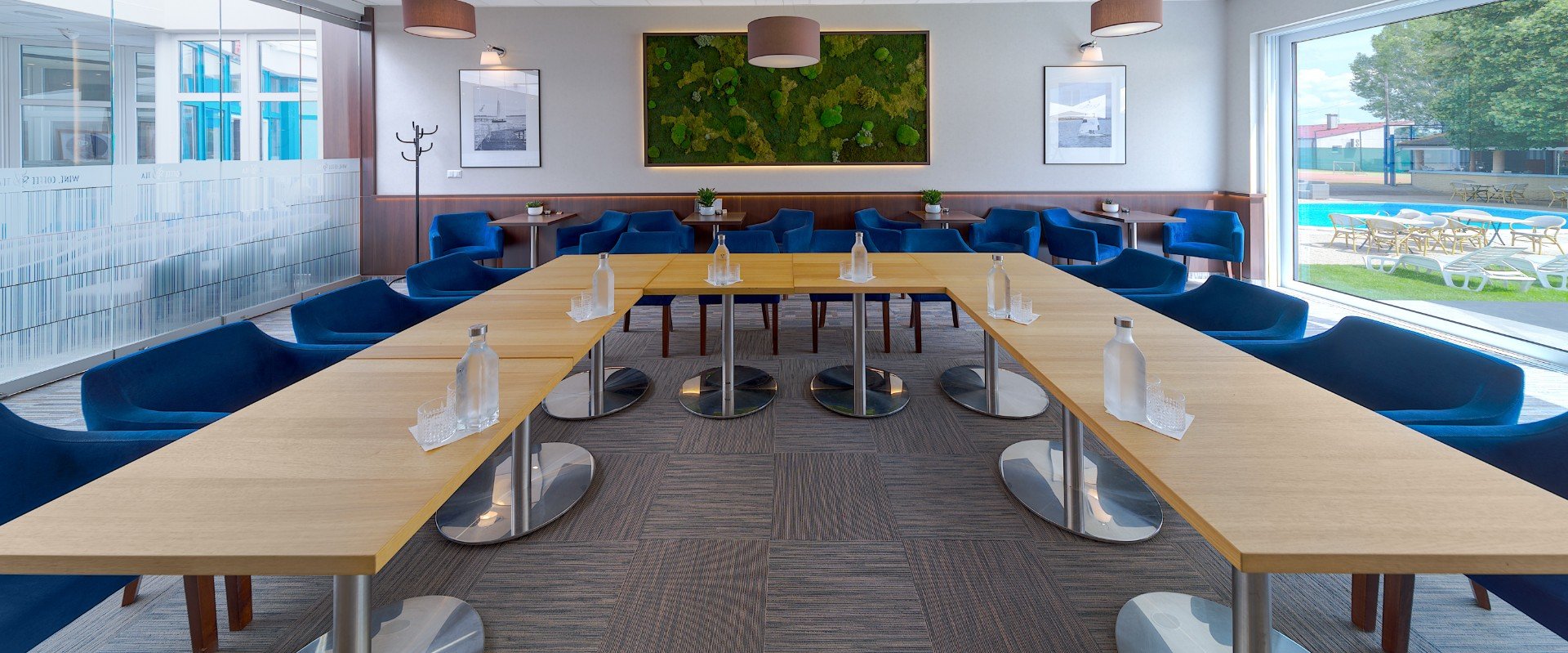 Miestnosť sa nachádza na 1. poschodí, je príjemne oddelená od ruchu recepcie a disponuje aj vlastným balkónom. Veľkou výhodou je možnosť zabezpečiť coffee break priamo v miestnosti, čo zaručuje maximálny komfort pre účastníkov.